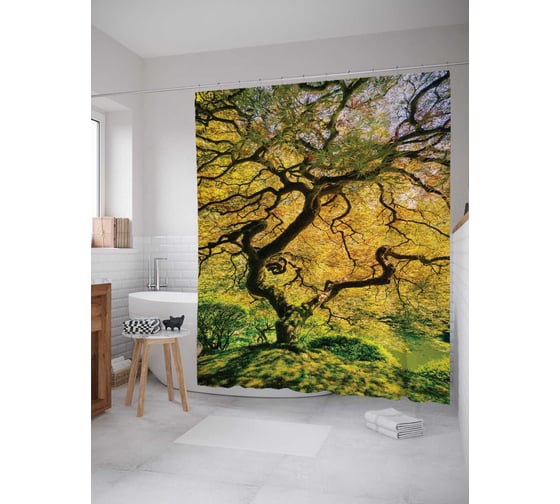 Штора (занавеска) для ванной JoyArty "Вечное дерево" из сатена, 180х200 см с крючками, sc_17888