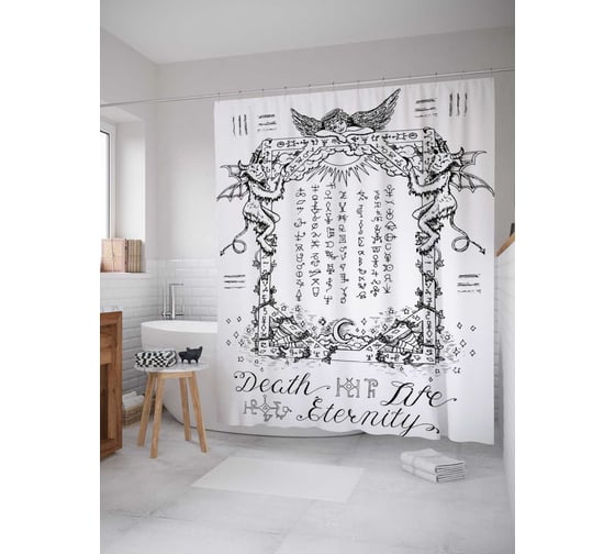 Штора (занавеска) для ванной JoyArty "Вечные ценности" из сатена, 180х200 см с крючками, sc_19367