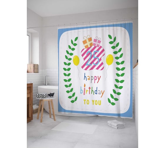 Штора (занавеска) для ванной JoyArty "Венок на юбилей" из сатена, 180х200 см с крючками, sc_34155