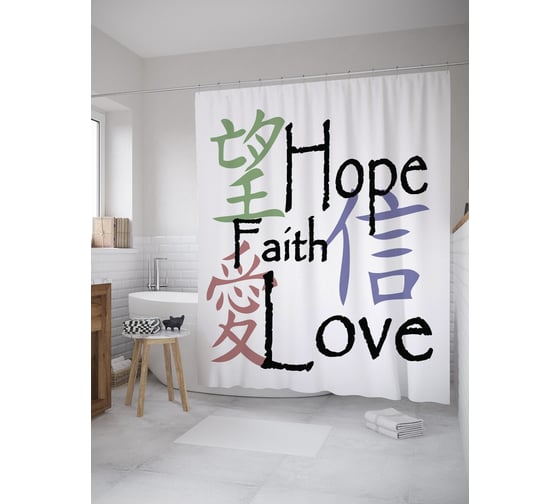 Сопутствующие товары для шторки-занавески JOYARTY Вера, надежда, любовь в иероглифах из сатена, 180х200 см с крючками