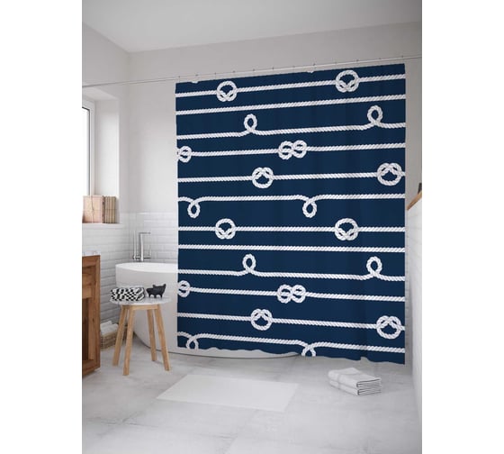 Штора (занавеска) для ванной JoyArty "Веревочный узор" из сатена, 180х200 см с крючками, sc_17440
