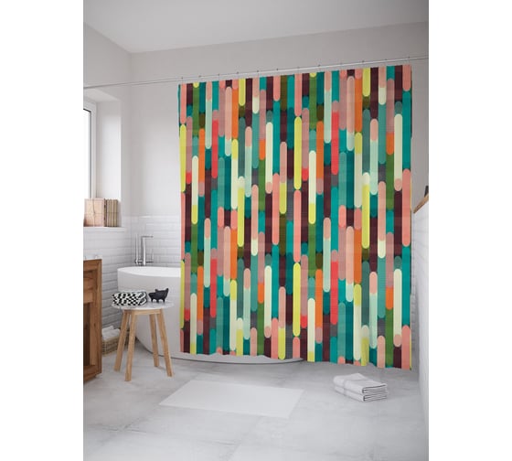 Штора (занавеска) для ванной JoyArty "Вертикальные овалы" из сатена, 180х200 см с крючками, sc_58043