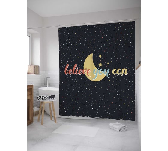 Штора (занавеска) для ванной JoyArty "Верю в тебя" из сатена, 180х200 см с крючками, sc_31519