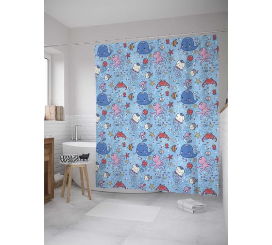 Сопутствующие товары для шторки-занавески JOYARTY Веселье в океане из сатена, 180х200 см с крючками