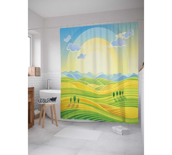 Штора (занавеска) для ванной JoyArty "Веселые холмы" из сатена, 180х200 см с крючками, sc_14898