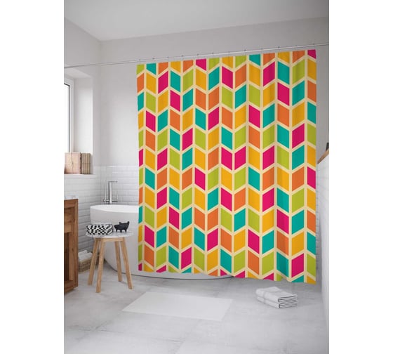 Штора (занавеска) для ванной JoyArty "Веселые ромбы" из сатена, 180х200 см с крючками, sc_11625