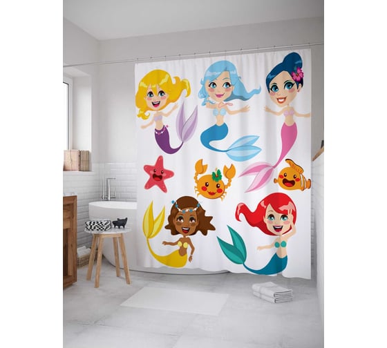 Сопутствующие товары для шторки-занавески JOYARTY Веселые русалки из сатена, 180х200 см с крючками
