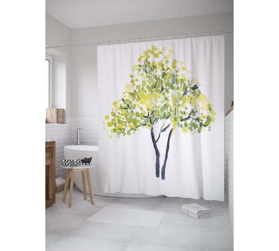 Сопутствующие товары для шторки-занавески JOYARTY Весеннее дерево из сатена, 180х200 см с крючками