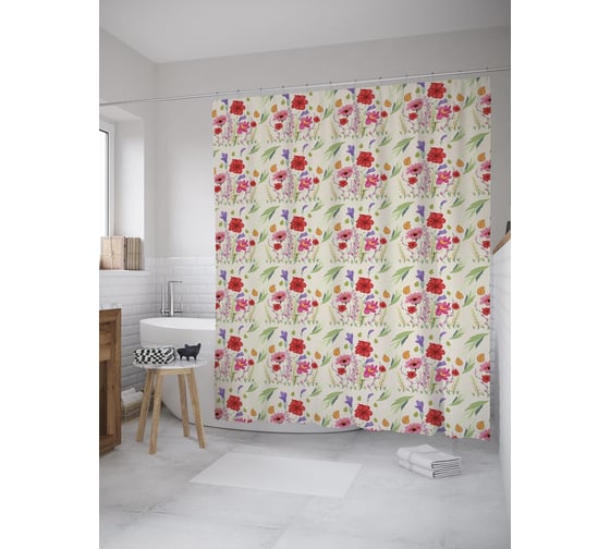 Штора (занавеска) для ванной JoyArty "Весеннее цветение" из сатена, 180х200 см с крючками, sc_60029