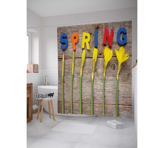 Штора (занавеска) для ванной JoyArty "Весенний парад" из сатена, 180х200 см с крючками, sc_14135