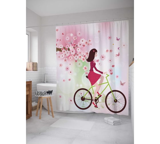 Штора (занавеска) для ванной JoyArty "Весенняя поездка" из сатена, 180х200 см с крючками, sc_30016