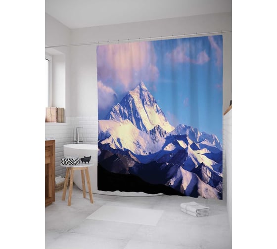Штора (занавеска) для ванной JoyArty "Вид на горы" из сатена, 180х200 см с крючками, sc_20399