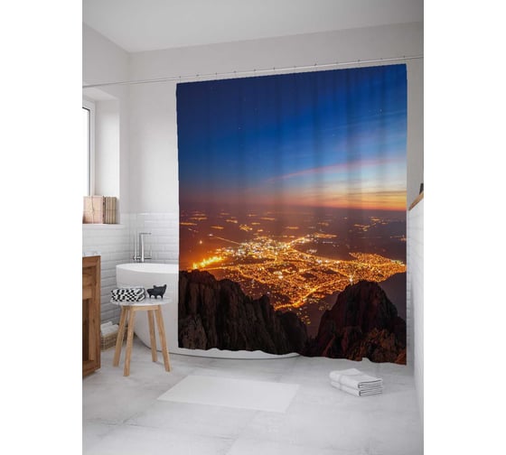 Штора (занавеска) для ванной JoyArty "Вид с горы" из сатена, 180х200 см с крючками, sc_29776