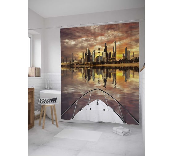 Штора (занавеска) для ванной JoyArty "Вид с яхты" из сатена, 180х200 см с крючками, sc_36542