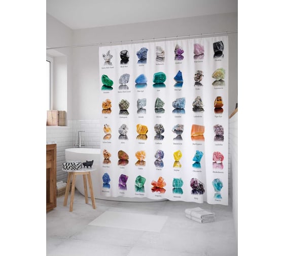 Сопутствующие товары для шторки-занавески JOYARTY Виды минералов из сатена, 180х200 см с крючками