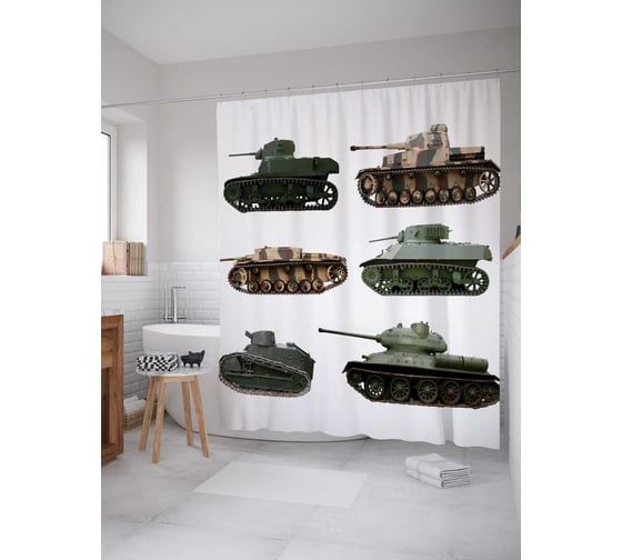 Сопутствующие товары для шторки-занавески JOYARTY Виды танков из сатена, 180х200 см с крючками