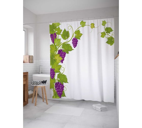 Штора (занавеска) для ванной JoyArty "Виноградная текстура" из сатена, 180х200 см с крючками, sc_21598