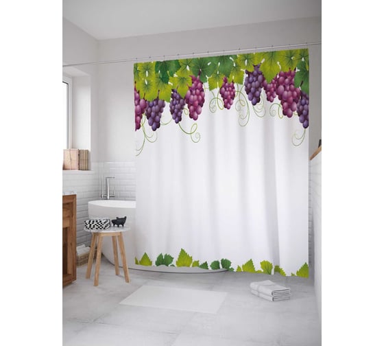 Штора (занавеска) для ванной JoyArty "Виноградное удовольствие" из сатена, 180х200 см с крючками, sc_21609