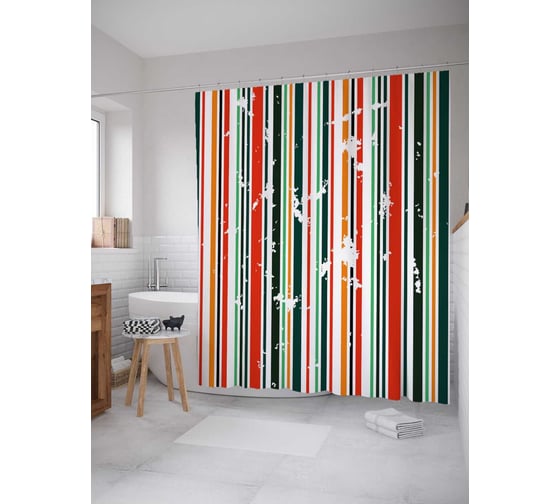 Штора (занавеска) для ванной JoyArty "Винтажная вертикаль" из сатена, 180х200 см с крючками, sc_28222