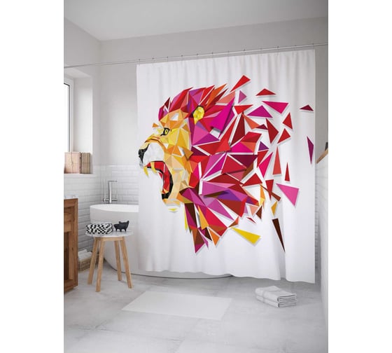 Штора (занавеска) для ванной JoyArty "Витражный лев" из сатена, 180х200 см с крючками, sc_23297