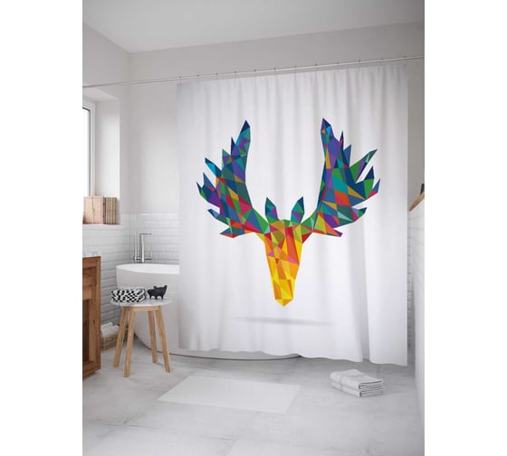 Штора (занавеска) для ванной JoyArty "Витражный лось" из сатена, 180х200 см с крючками, sc_12777