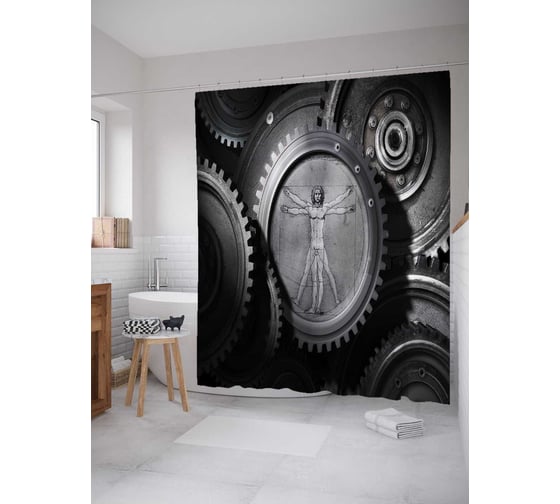 Штора (занавеска) для ванной JoyArty "Витрувианский человек" из сатена, 180х200 см с крючками, sc_15792