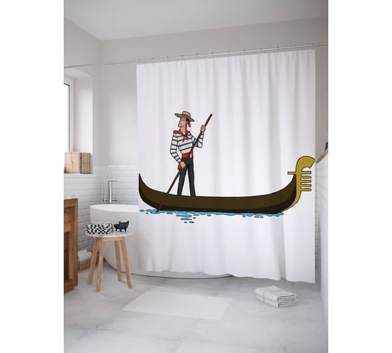 Штора (занавеска) для ванной JoyArty "Внимательный гондольер" из сатена, 180х200 см с крючками, sc_13701