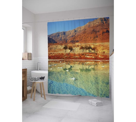 Штора (занавеска) для ванной JoyArty "Вода в пустыне" из сатена, 180х200 см с крючками, sc_32158