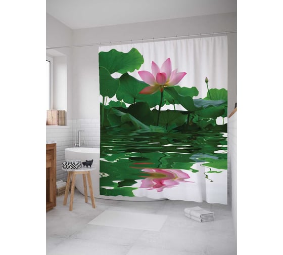Штора (занавеска) для ванной JoyArty "Водное украшение" из сатена, 180х200 см с крючками, sc_2608