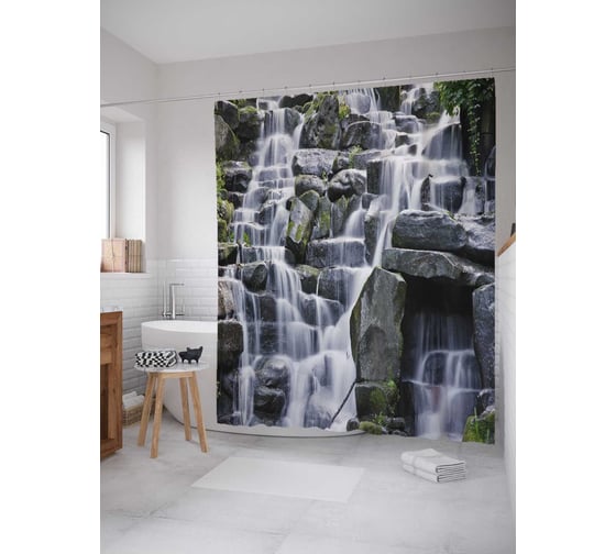 Штора (занавеска) для ванной JoyArty "Водопадные ступени" из сатена, 180х200 см с крючками, sc_18931