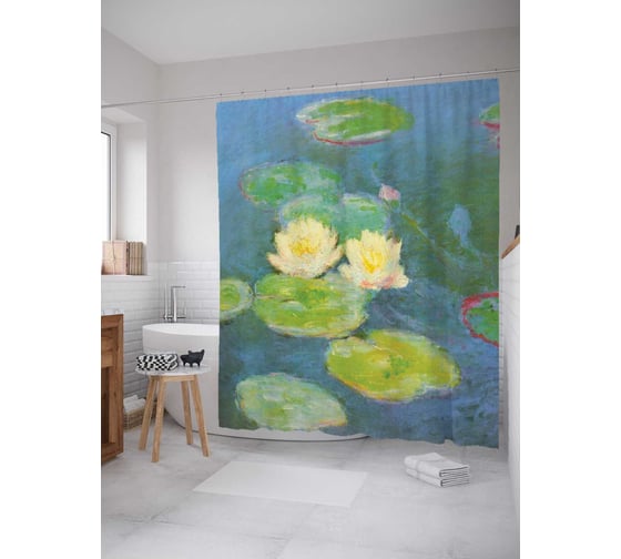 Штора (занавеска) для ванной JoyArty "Водяные лилии" из сатена, 180х200 см с крючками, sc_6877