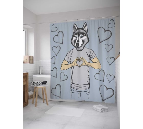 Штора (занавеска) для ванной JoyArty "Волк любовник" из сатена, 180х200 см с крючками, sc_31986