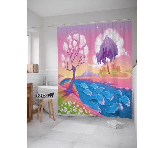 Штора (занавеска) для ванной JoyArty "Волнистая река" из сатена, 180х200 см с крючками, sc_14971