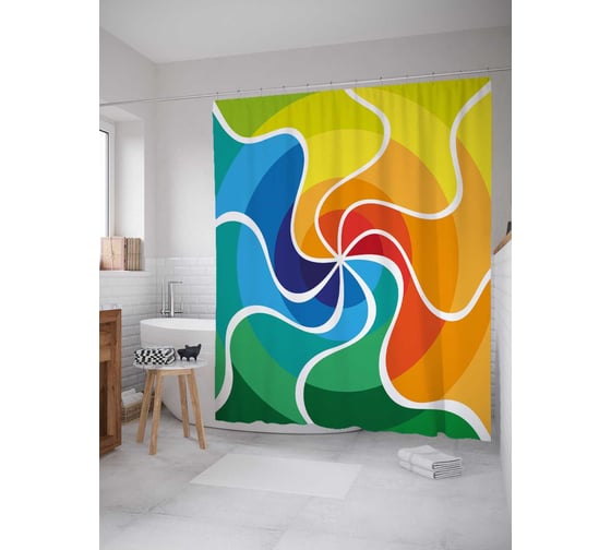 Штора (занавеска) для ванной JoyArty "Волнистая спираль" из сатена, 180х200 см с крючками, sc_18629