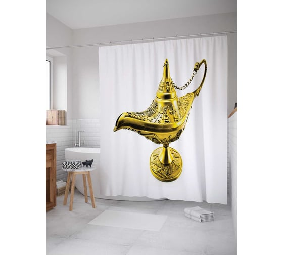 Штора (занавеска) для ванной JoyArty "Волшебная лампа" из сатена, 180х200 см с крючками, sc_9493