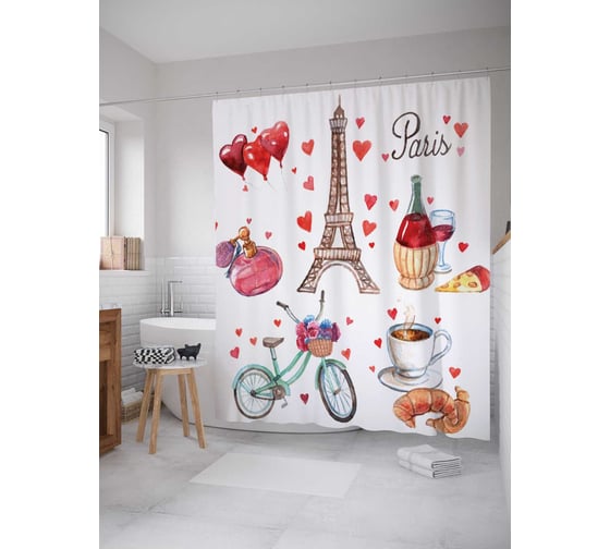 Сопутствующие товары для шторки-занавески JOYARTY Воспоминания про Париж из сатена, 180х200 см с крючками