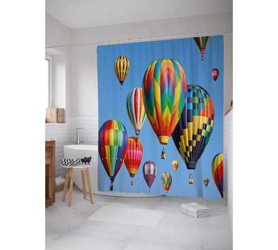 Штора (занавеска) для ванной JoyArty "Воздушное пространство" из сатена, 180х200 см с крючками, sc_21779