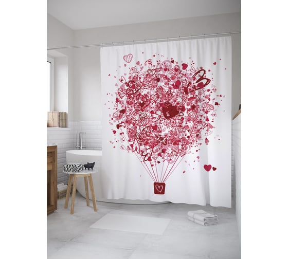 Сопутствующие товары для шторки-занавески JOYARTY Воздушный шар из сердечек из сатена, 180х200 см с крючками