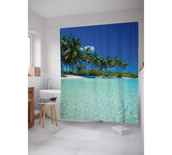 Штора (занавеска) для ванной JoyArty "Возможность прохладиться" из сатена, 180х200 см с крючками, sc_13814
