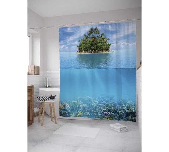 Сопутствующие товары для шторки-занавески JOYARTY Всплывший остров из сатена, 180х200 см с крючками