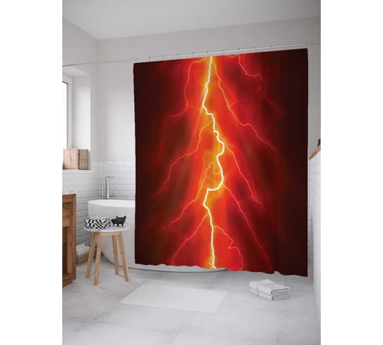 Штора (занавеска) для ванной JoyArty "Вспышка молнии" из сатена, 180х200 см с крючками, sc_16290