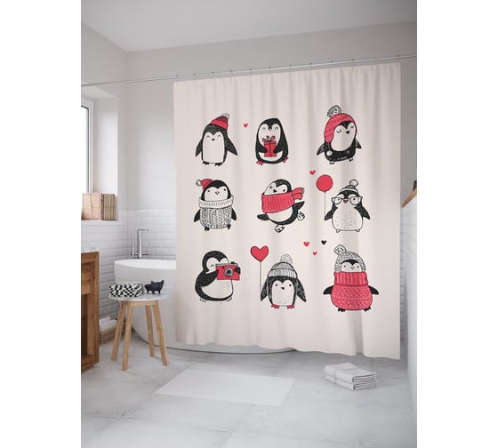 Сопутствующие товары для шторки-занавески JOYARTY Выбери своего пингвина из сатена, 180х200 см с крючками