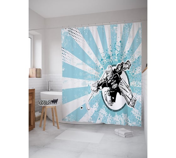 Штора (занавеска) для ванной JoyArty "Выпад вратаря" из сатена, 180х200 см с крючками, sc_54246