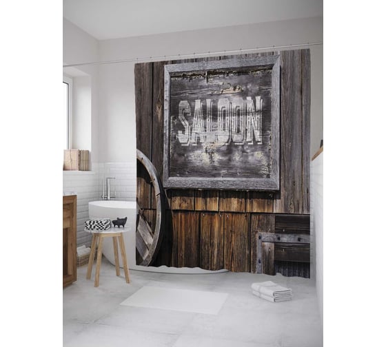 Штора (занавеска) для ванной JoyArty "Вывеска над дверью" из сатена, 180х200 см с крючками, sc_11938