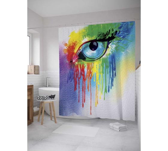 Штора (занавеска) для ванной JoyArty "Взгляд красок" из сатена, 180х200 см с крючками, sc_8363