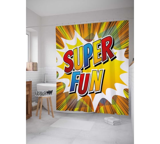 Штора (занавеска) для ванной JoyArty "Взрывное веселье" из сатена, 180х200 см с крючками, sc_30967