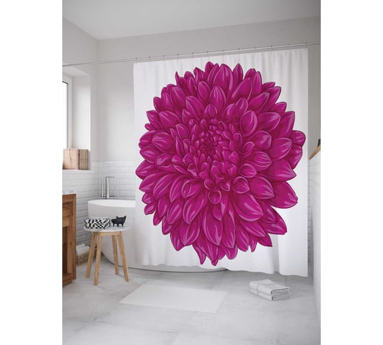 Штора (занавеска) для ванной JoyArty "Взрывной цветок" из сатена, 180х200 см с крючками, sc_20502