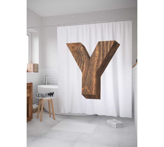 Штора (занавеска) для ванной JoyArty "Y из дерева" из сатена, 180х200 см с крючками, sc_4532y