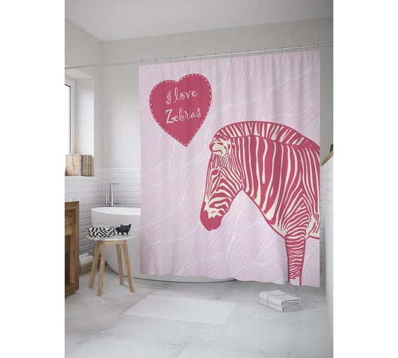 Штора (занавеска) для ванной JoyArty "Я люблю зебр" из сатена, 180х200 см с крючками, sc_61667