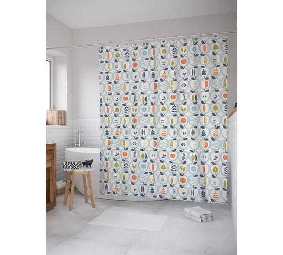 Сопутствующие товары для шторки-занавески JOYARTY Яблочный алфавит из сатена, 180х200 см с крючками